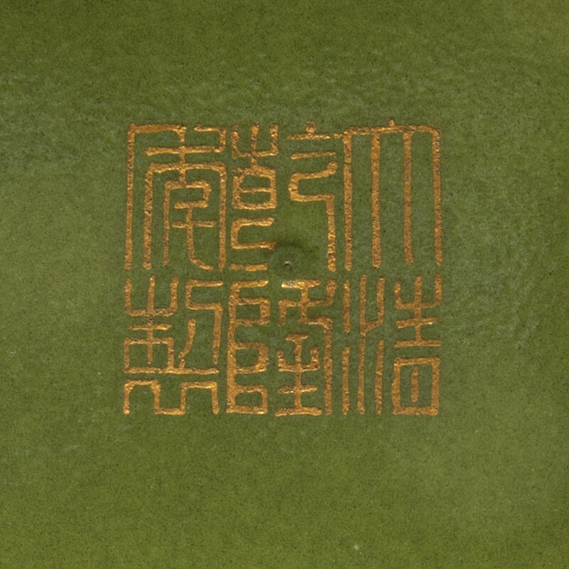 The center of the cover is molded with a shou character roundel. The interior of the cover and body are covered with light turquoise glaze.