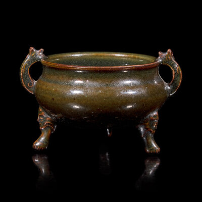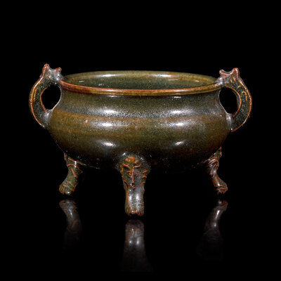 A Chinese Green Glazed Tripod Censer, Qing Dynasty