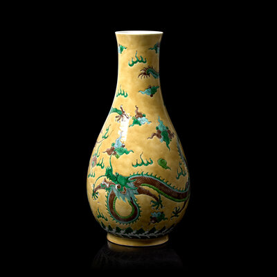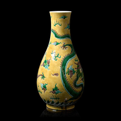 晚清-民國 黃地素三彩龍紋瓶