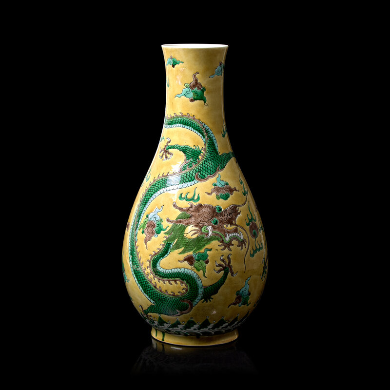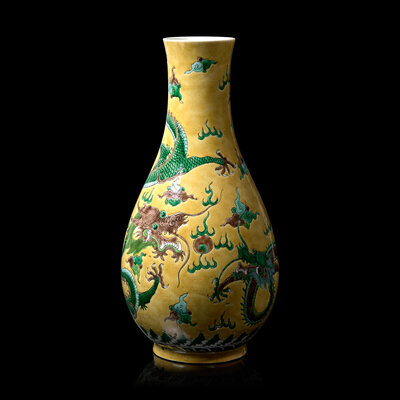 A Chinese Yellow Ground Famille Verte 'Dragons' Vase, Late Qing to Republic Period