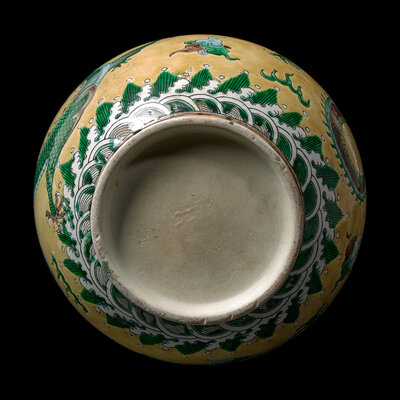 Decorated with two sinuous dragons against the yellow ground.