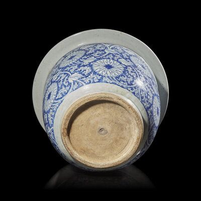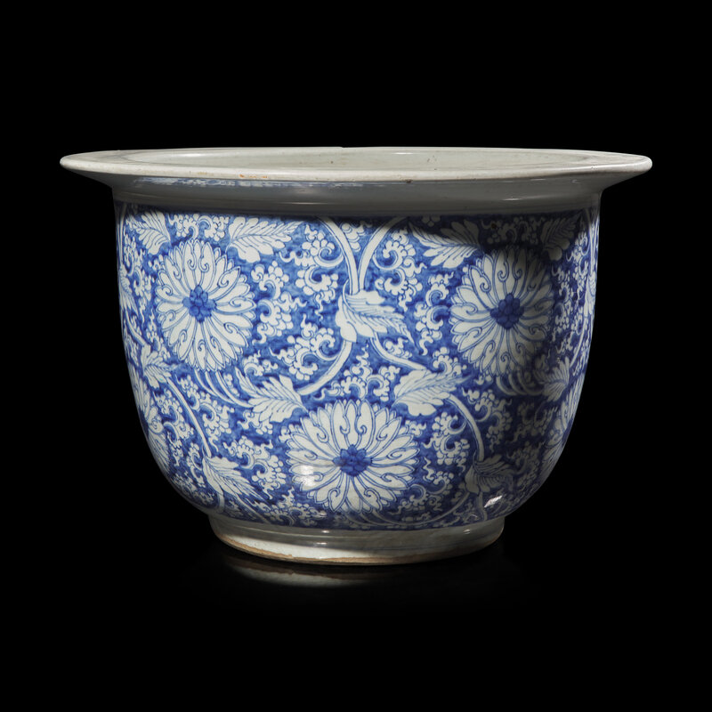 A Large Blue and White Porcelain 'Lotus Scroll' Jardiniere, 18th-19th Century