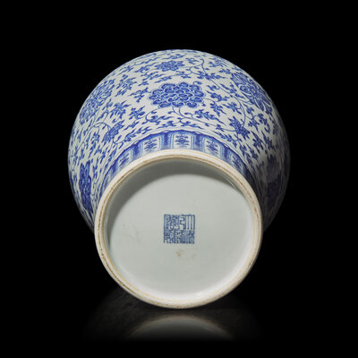 Finely decorated in Ming dynasty style, underside with four-character Qianlong seal mark.