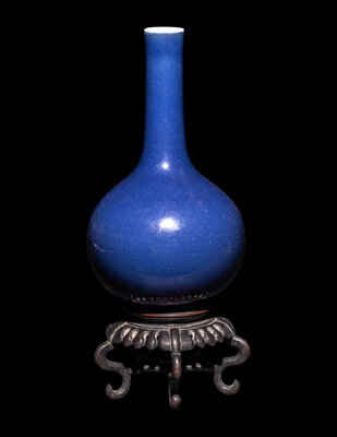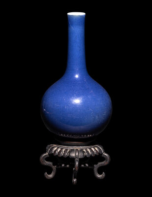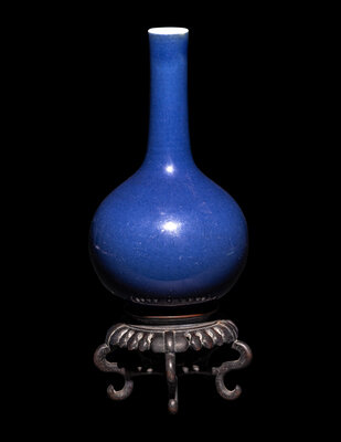 Two Chinese Blue Glazed Porcelain Vases, 19th-20th Century