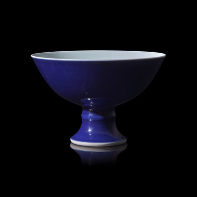 A Chinese Blue Ground Porcelain Stem Bowl, Yongzheng Mark