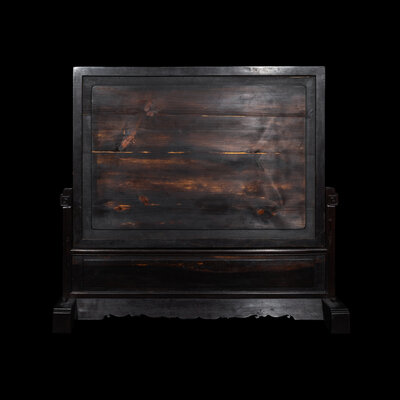 A Large Chinese Cloisonne Enamel and Carved Hardwood Wood Table Screen, 20th Century