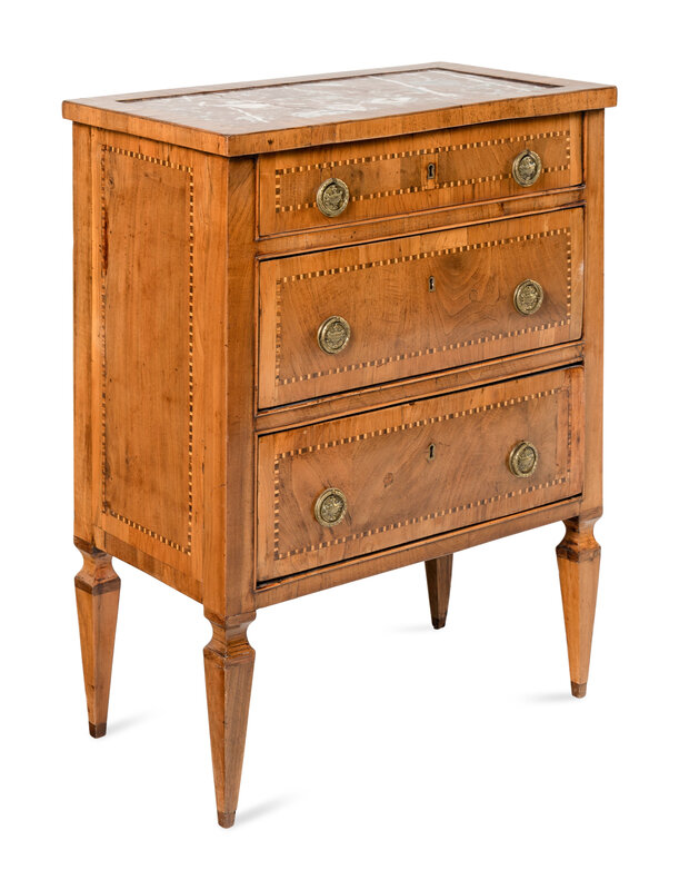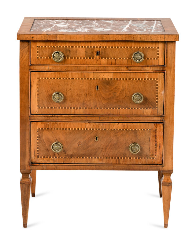 A North Italian Inlaid Walnut and Red Marble Inset Commodino