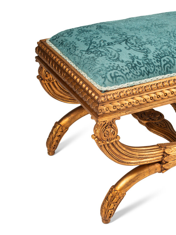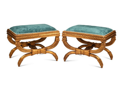 A Pair of Italian Neoclassical Style Carved Giltwood Curule-Form Benches