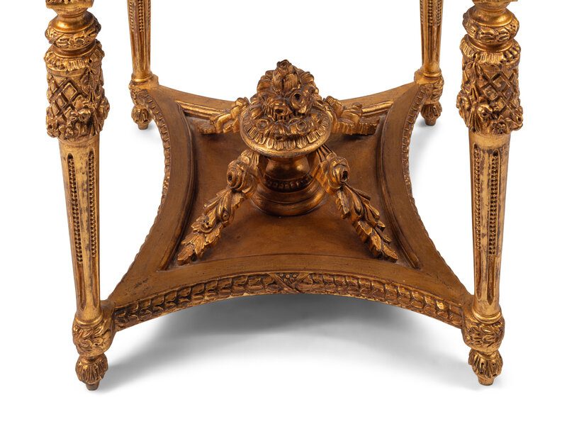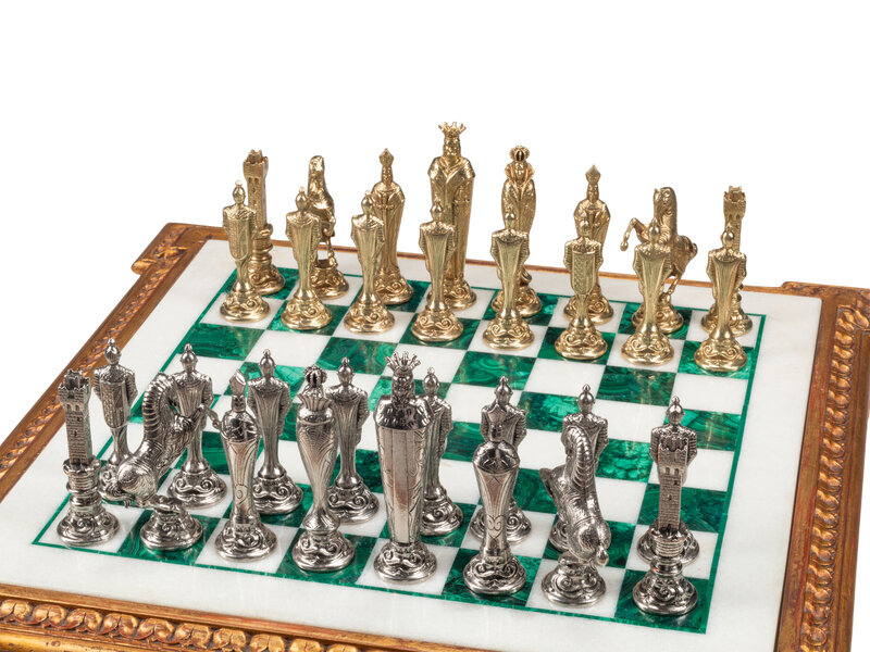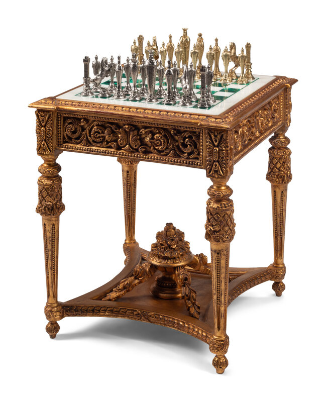 An Italian Neoclassical Style Giltwood Marble and Malachite-Top Chess Table