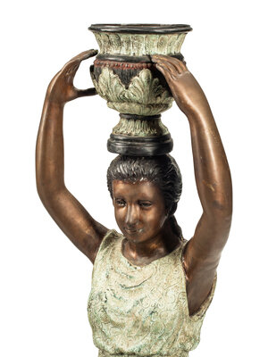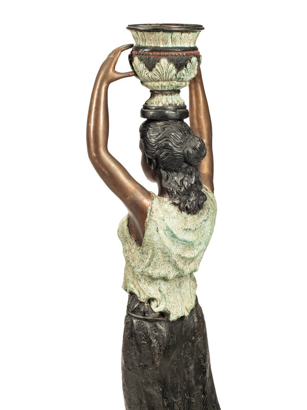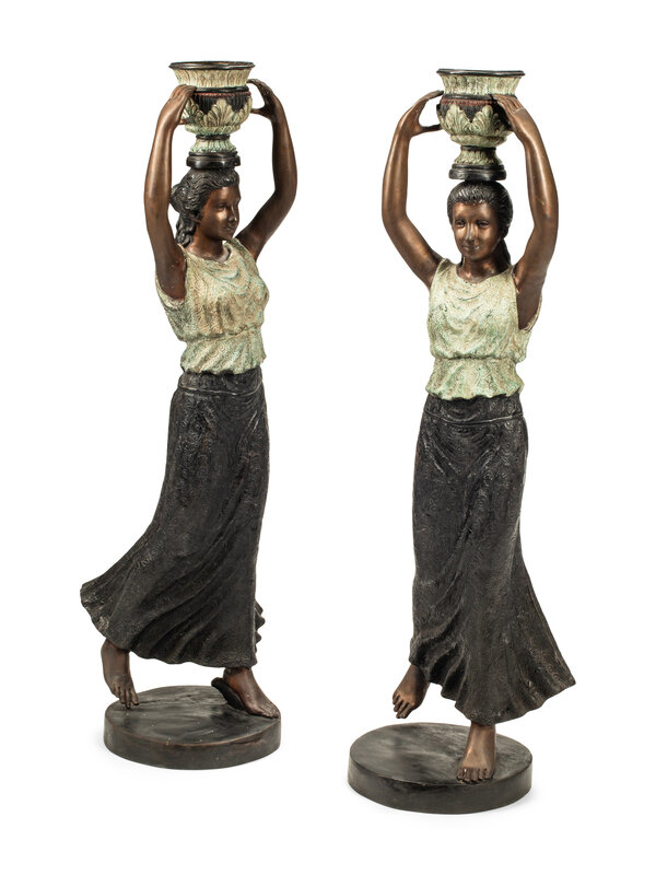 A Pair of Large Polychrome Bronze Figural Jardinières