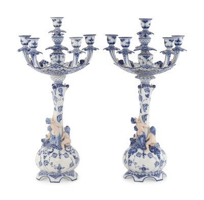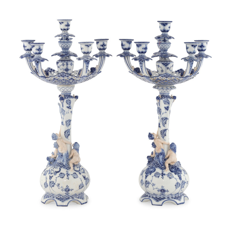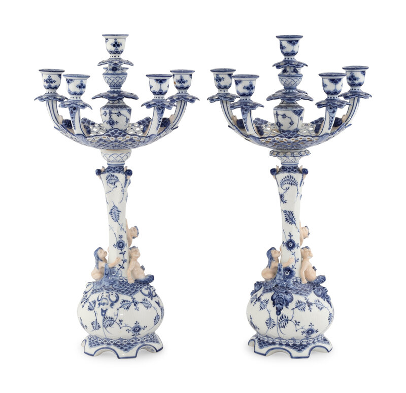 A Pair of Royal Copenhagen Porcelain Candelabra