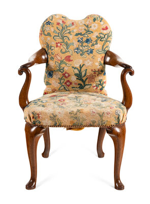 A George I Walnut and Needlework Upholstered Armchair