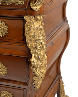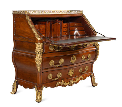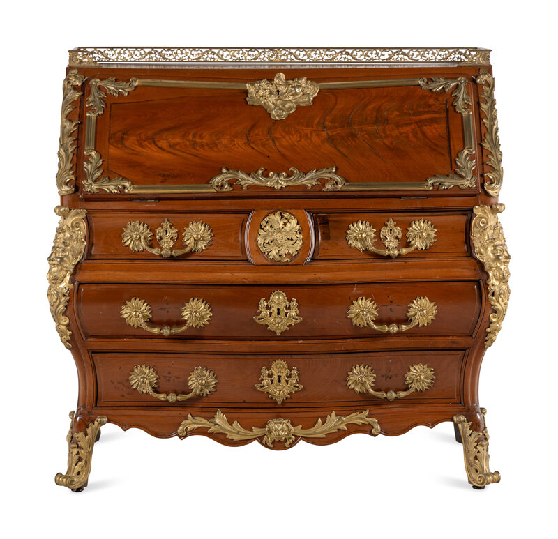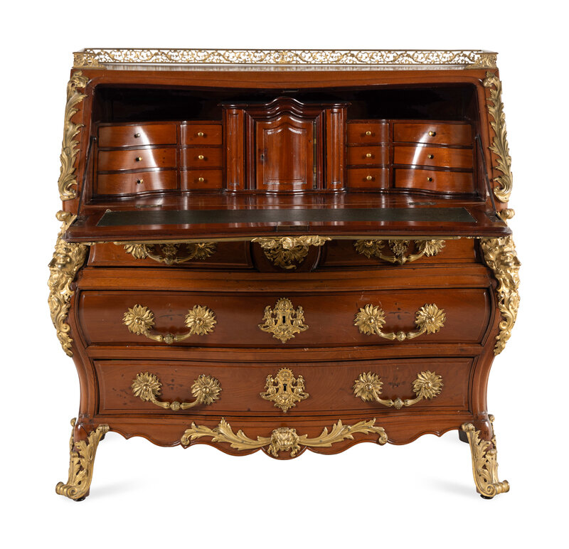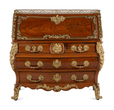 A Louis XV Style Gilt Bronze Mounted Mahogany Slant-Front Bureau