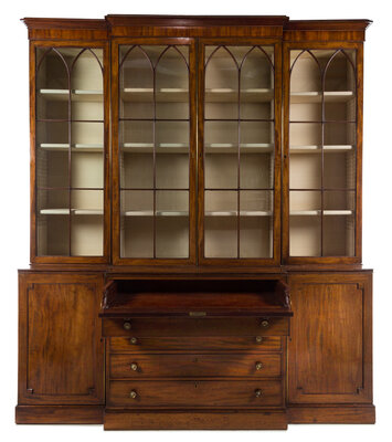 A George III Mahogany Breakfront Bureau Bookcase