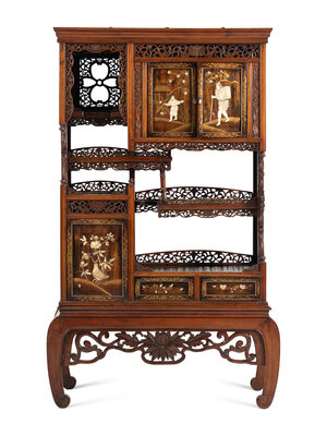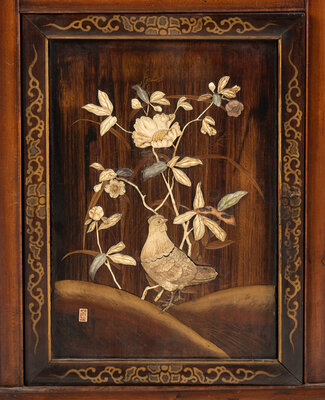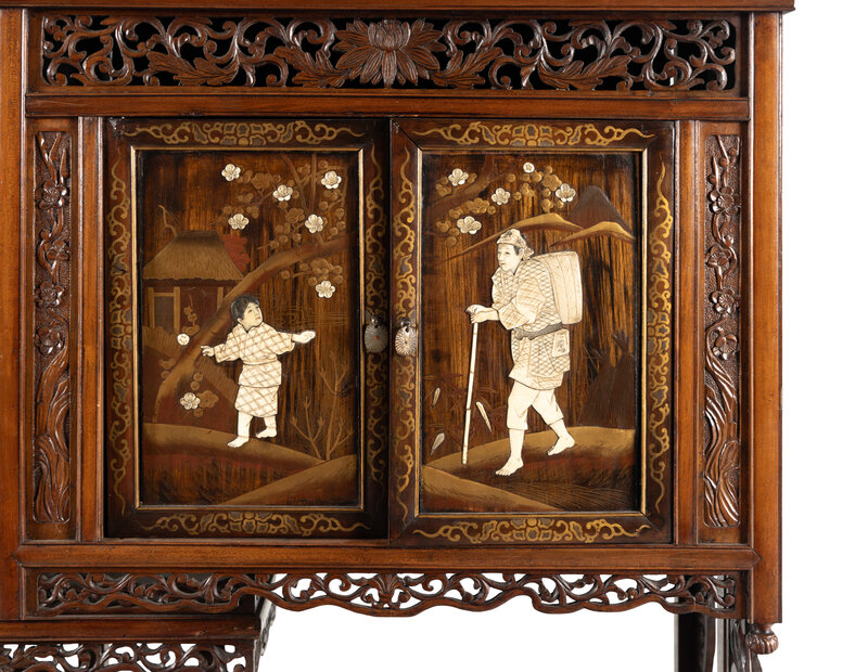 A Victorian Japonesque Carved and Inlaid Cabinet