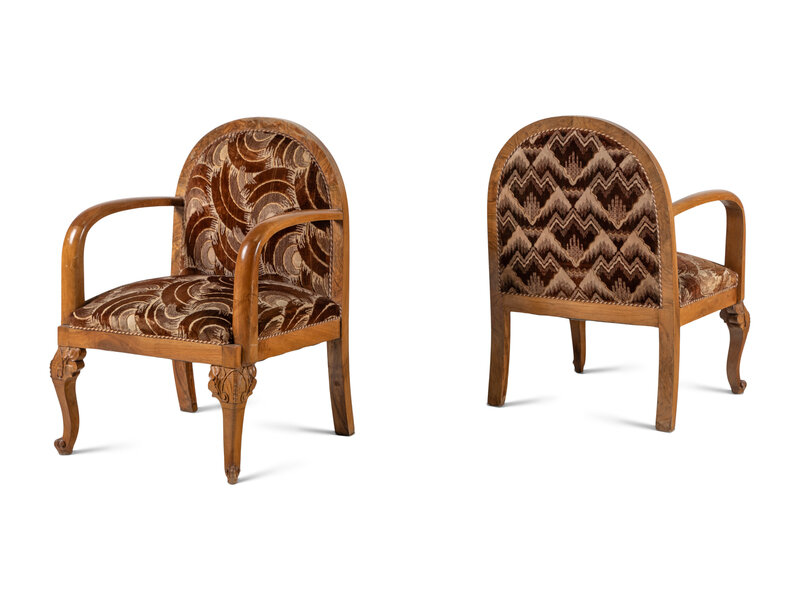 A Pair of Art Deco Walnut Club Chairs