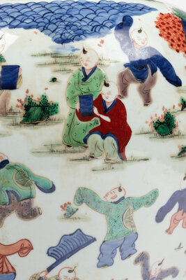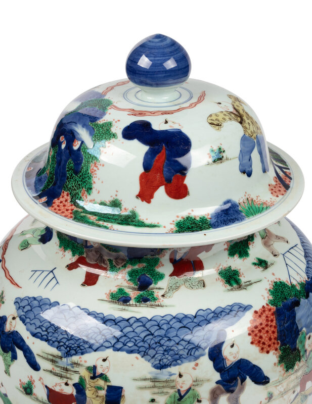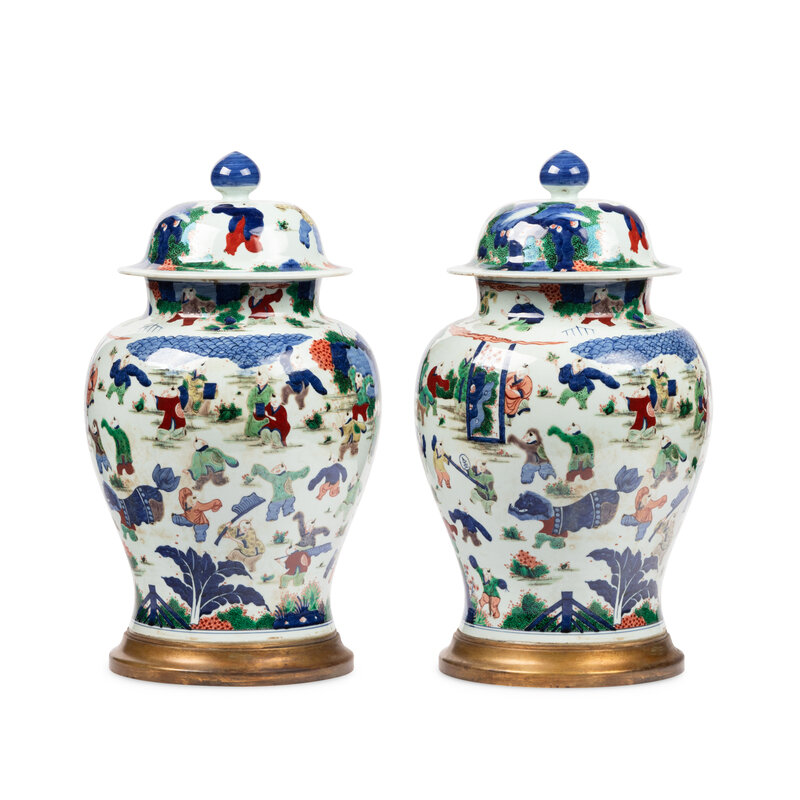 A Pair of Large Wucai Porcelain Jars