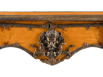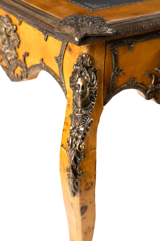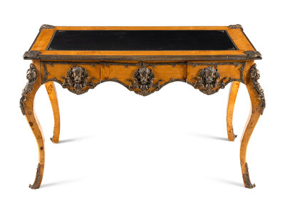 A Louis XV Style Gilt Metal Mounted Burlwood Bureau Plat