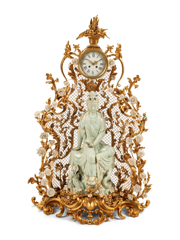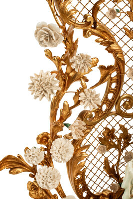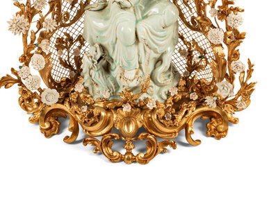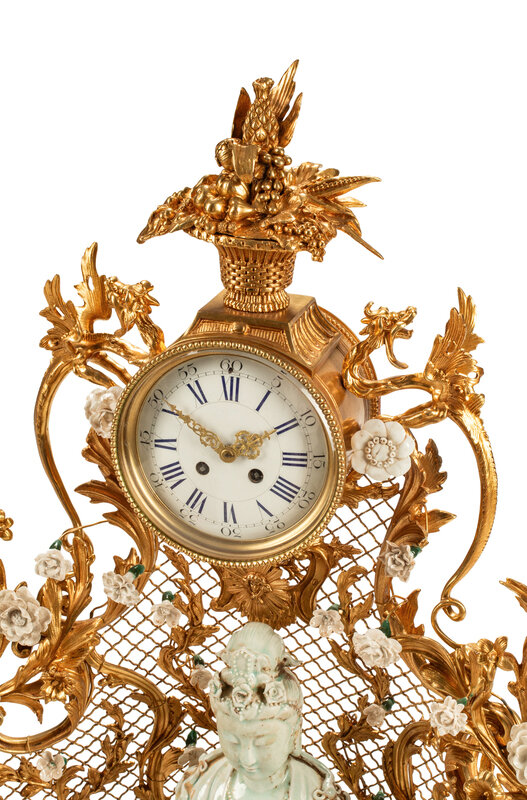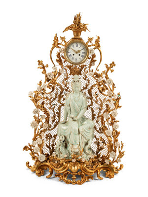 A Large Louis XV Style Gilt Bronze and White Porcelain Clock