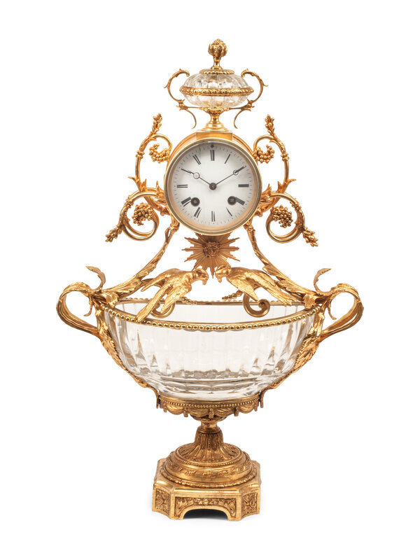 A Louis XV Style Gilt Bronze and Cut Glass Clock