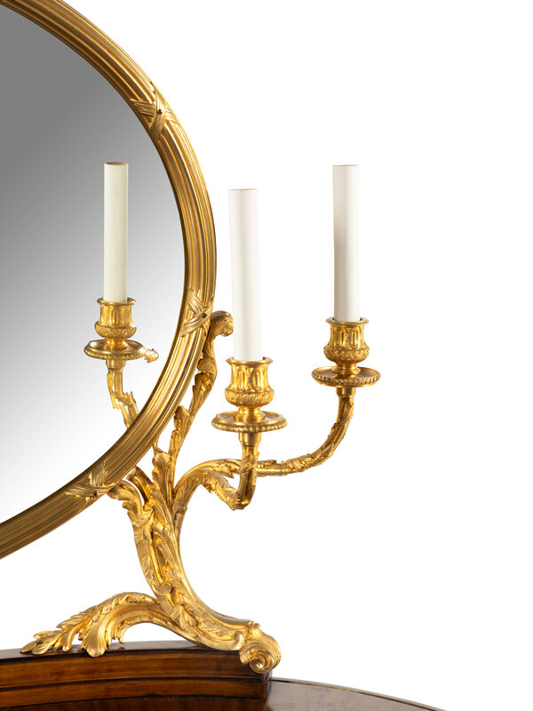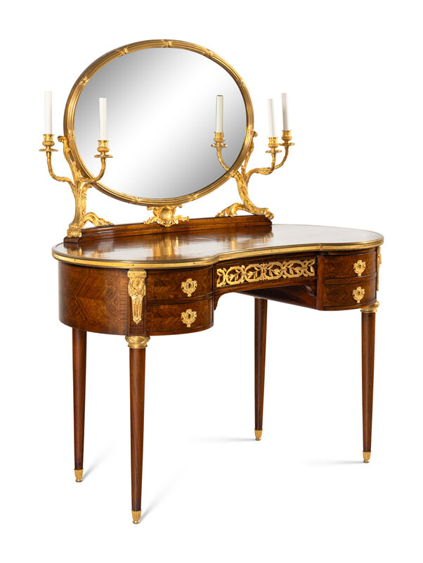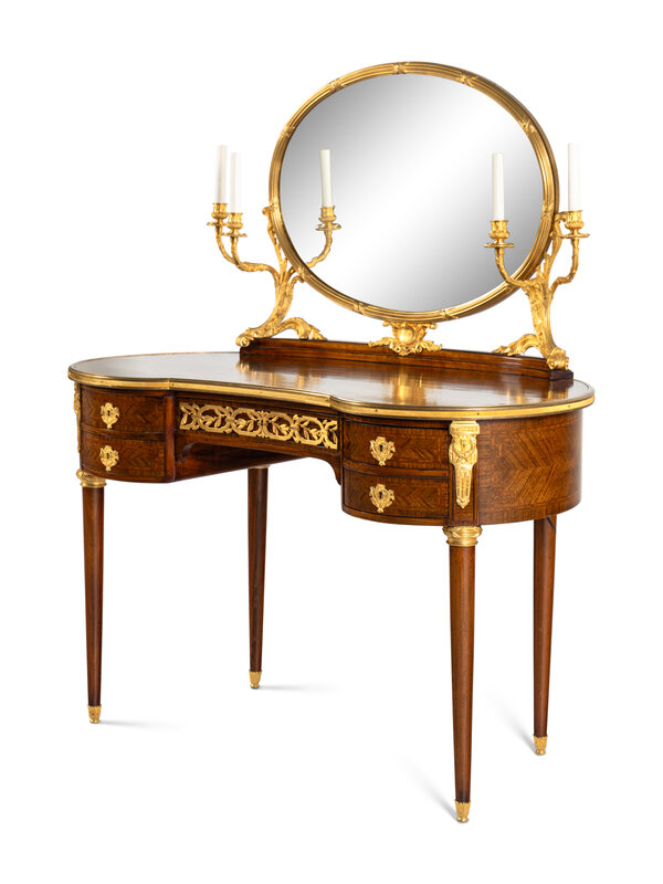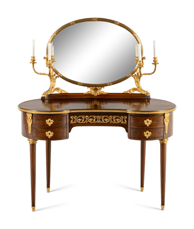 A Louis XVI Style Gilt Bronze Mounted Mahogany Dressing Table and Mirror