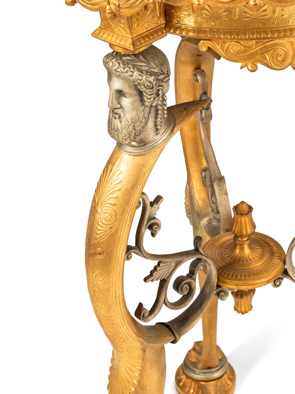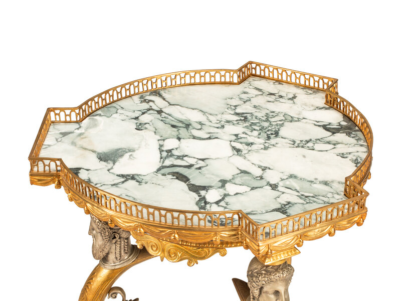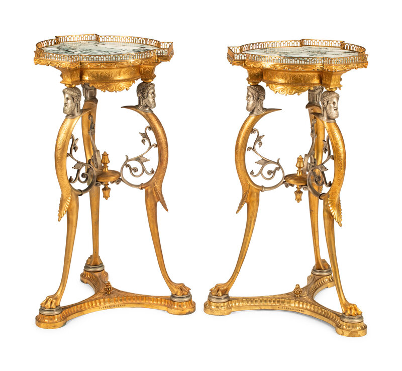 A Pair of French Neoclassical Style Gilt and Silvered Bronze Marble-Top Tables