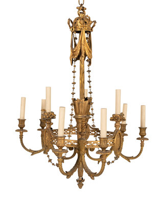A French Neoclassical Gilt Bronze Nine-Light Chandelier