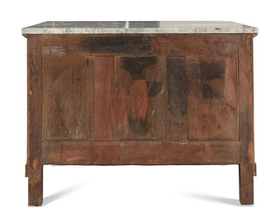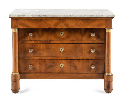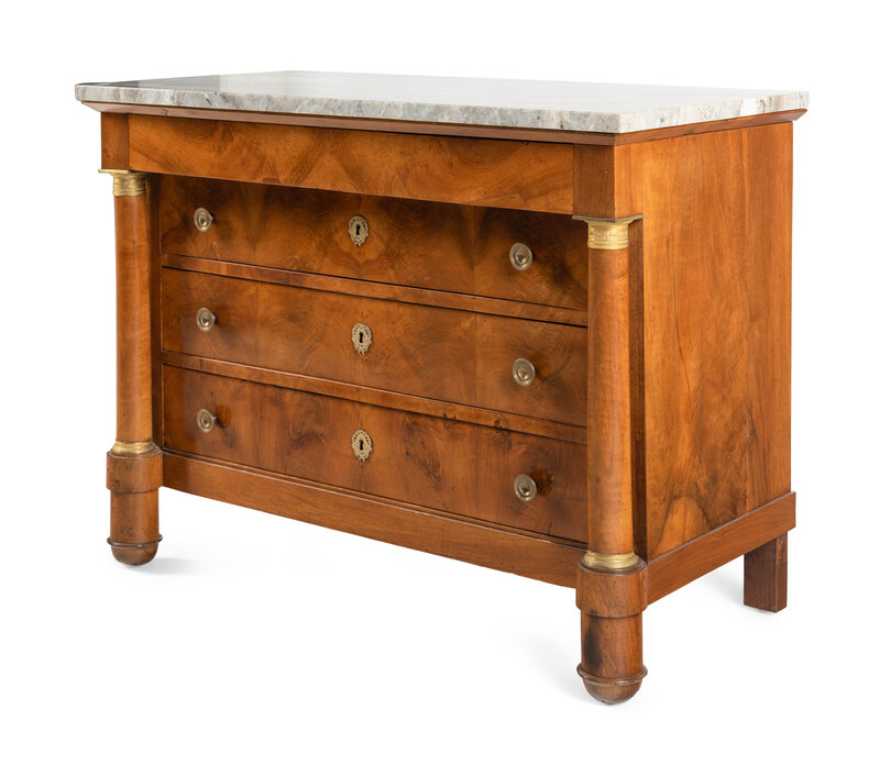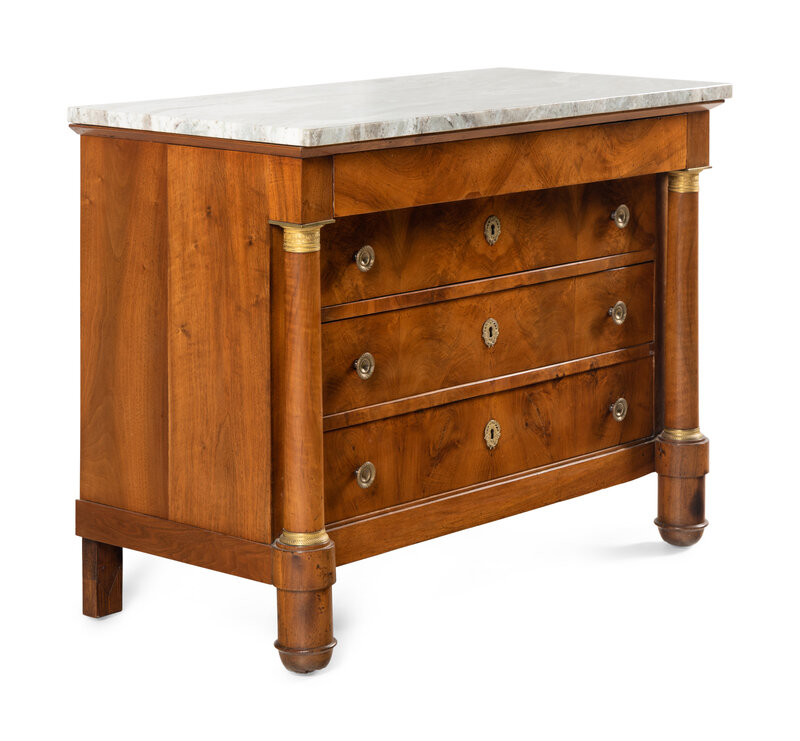 An Empire Gilt Bronze Mounted Walnut Marble-Top Commode