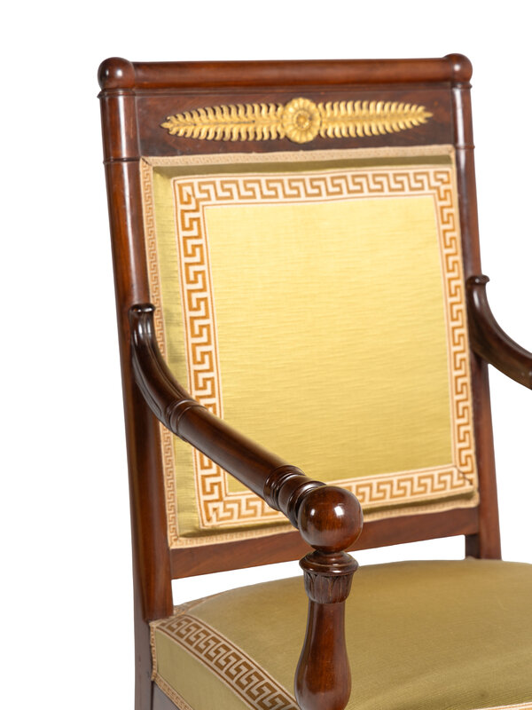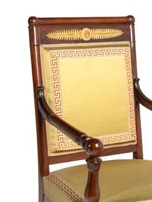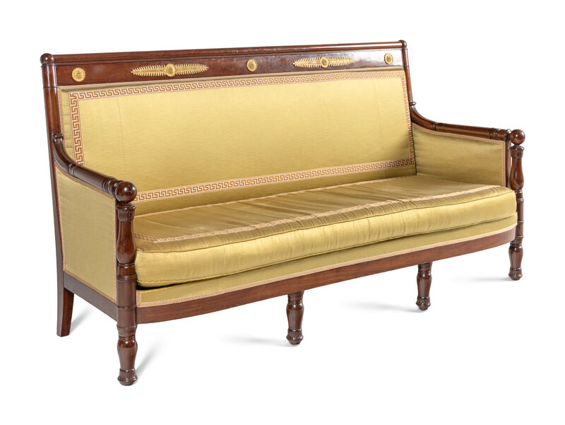 A Restauration Gilt Bronze Mounted Mahogany Three-Piece Seating Suite