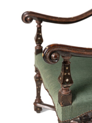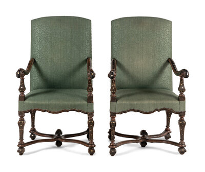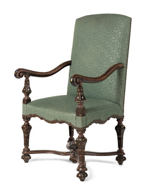 A Pair of Louis XIV Walnut and Shell-Inlaid Fauteuils