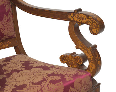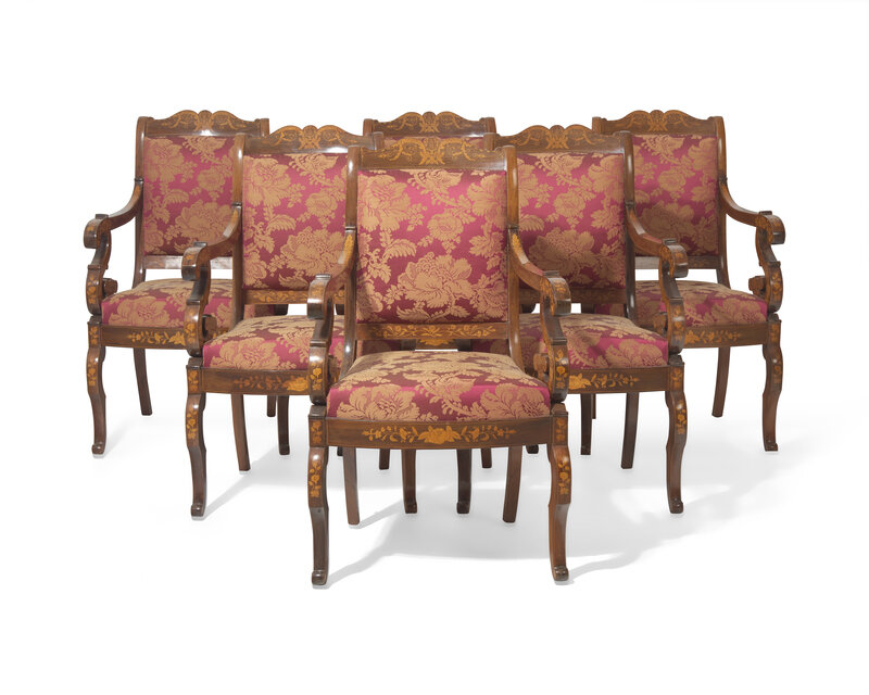 A Fine Set of Six Louis Philippe Palisander and Marquetry Fauteuils