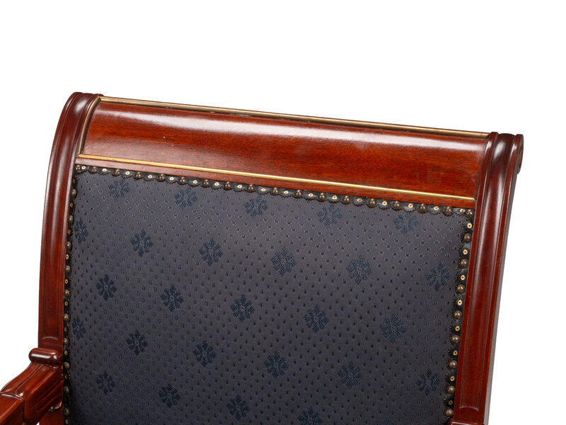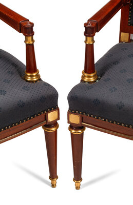A Pair of Directoire Style Gilt Bronze Mounted Mahogany Armchairs