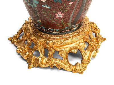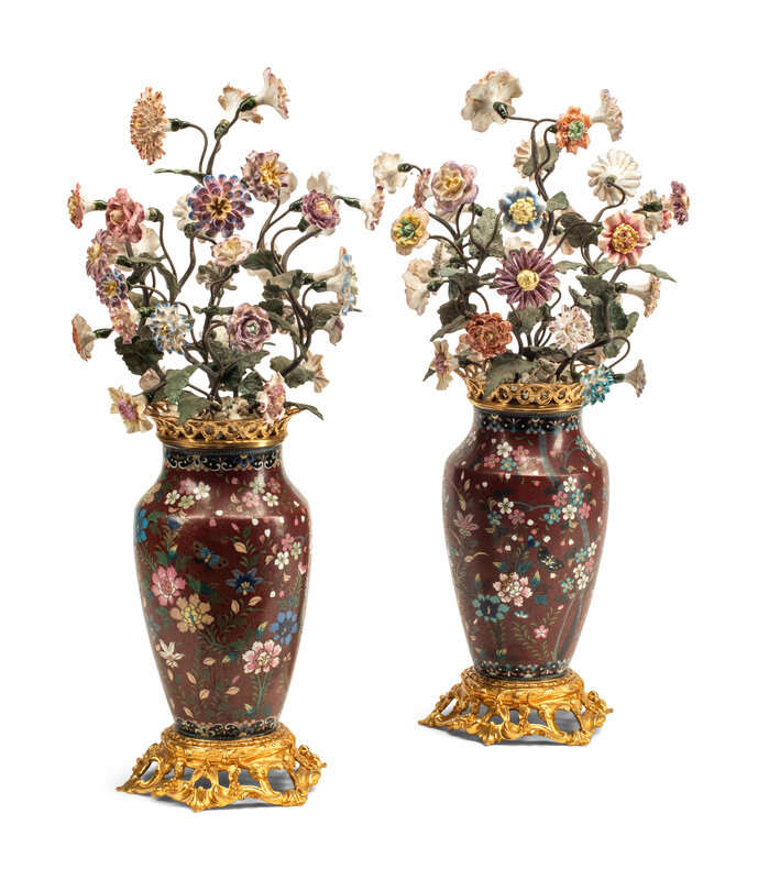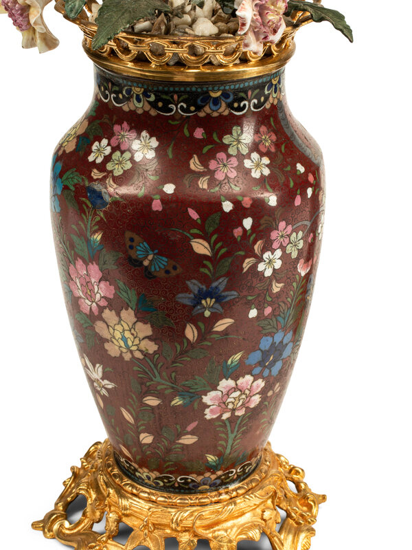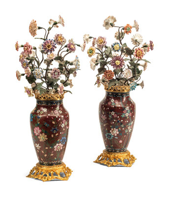 A Pair of Gilt Bronze Mounted Cloisonné and Porcelain Vases
