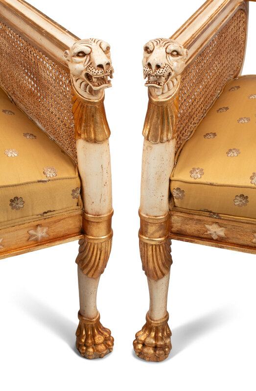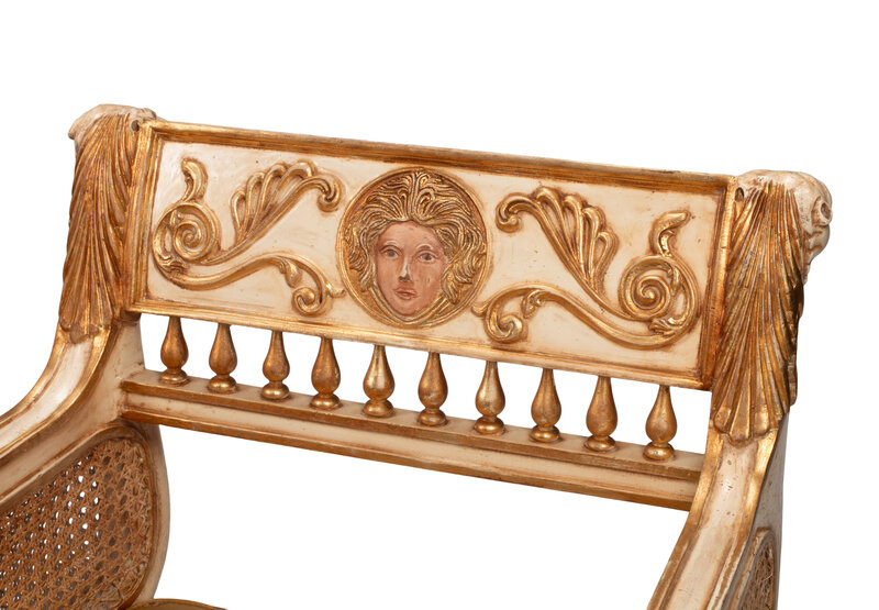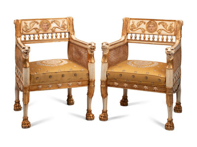 A Pair of Italian Neoclassical Style Painted and Parcel-Gilt Armchairs