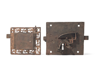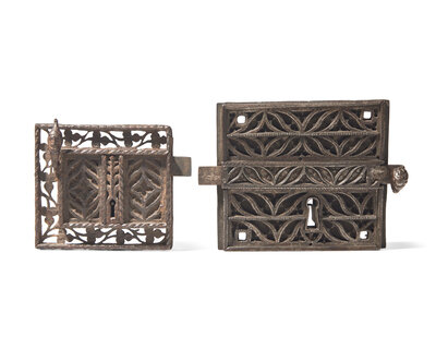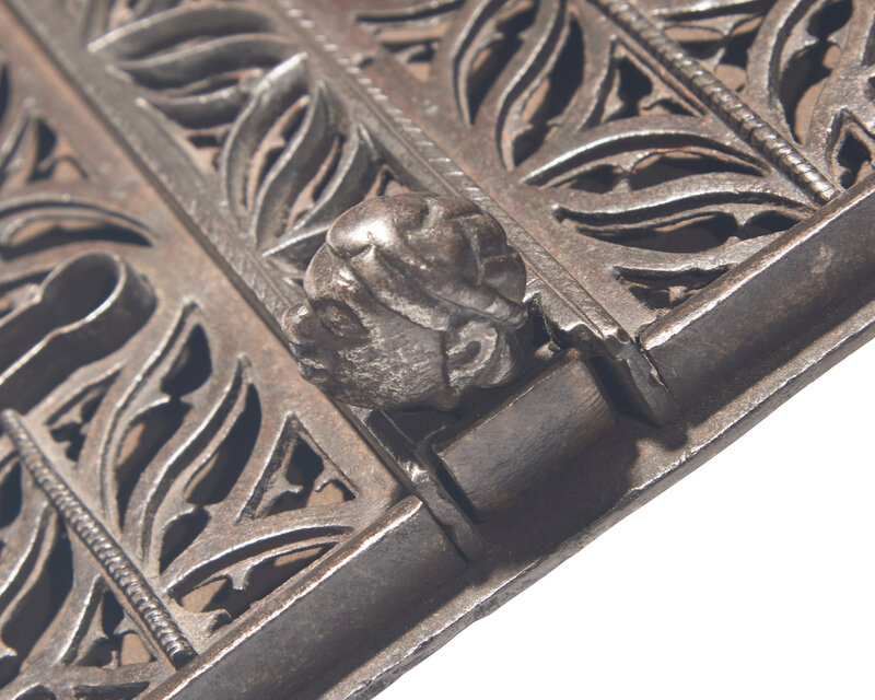 Each with Gotchic tracery, the latches with human head-form knobs.