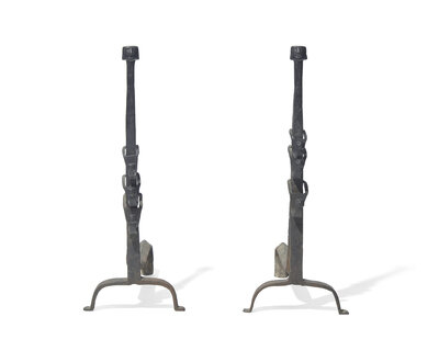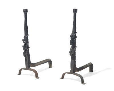 A Pair of Wrought Iron Andirons, Northern European, Probably 17th Century