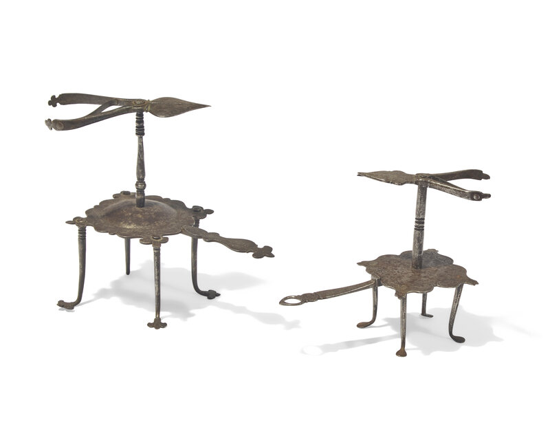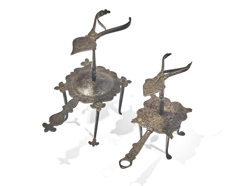 Two Small Wrought Iron Taper Holders, French or German, 17th Century