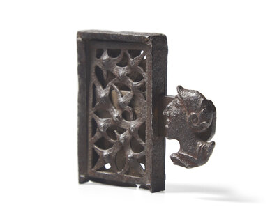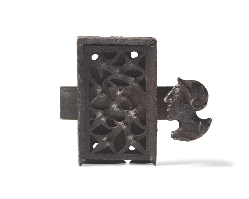 A Small Wrought Iron Latch with Human Face-Form Knob, French, 16th Century