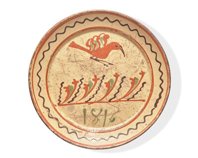 A Glazed and Slip-Decorated Redware Pie Plate, Dated "1816," Attributed to Old Salem, North Carolina