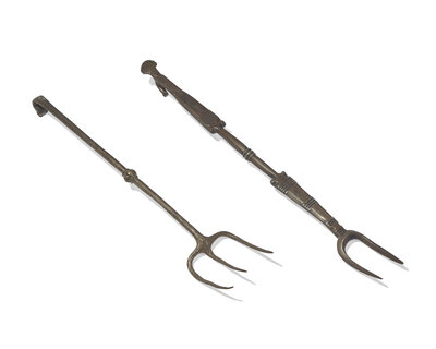 Two Wrought Iron Roasting Forks, French or Flemish, 18th Century