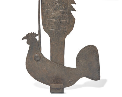 A Wrought Iron Fireplace Trammel with Rooster Catch, French, Dated "1836"