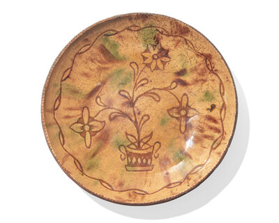 A Glazed and Sgraffito-Redware Pie Plate, Attributed to Jacob Medinger, Circa 1930
