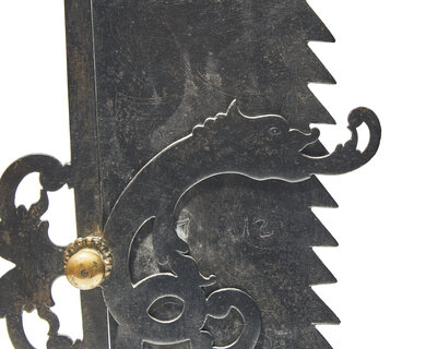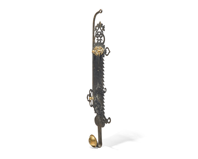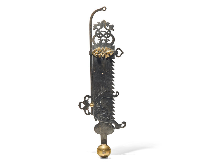 An Elaborate Wrought Iron and Brass Fireplace Trammel, Northern European, Dated "1712"