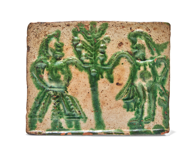 An English Glazed Earthenware Fireplace Tile Molded with Figures of Adam and Eve, 17th / 18th Century
