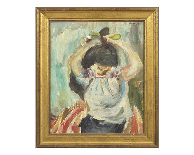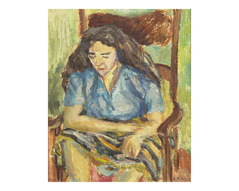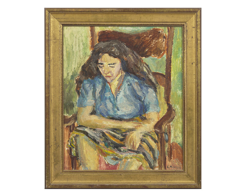 Woman Brushing Hair (1960); together with Lady in a Chair (1961), and Seated Nude (1970) as well as Crouching Nude (1966) by Edward Maher (American, 20th Century) (Four Works)