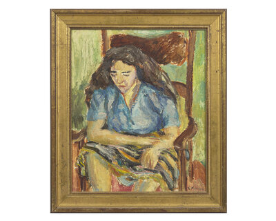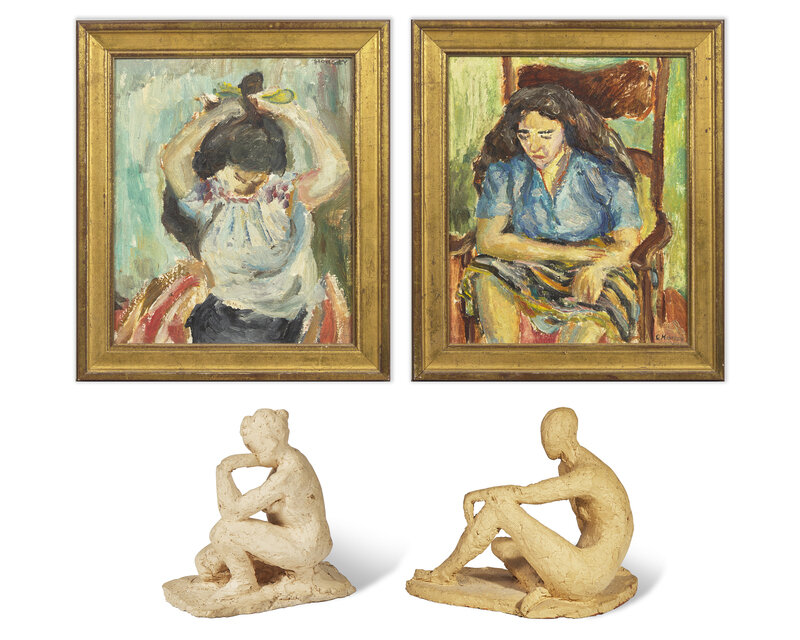 Oils (each): 12 x 10 in. (30.5 x 25.4cm) | Seated Nude: H: 6 in. (15.2cm) D: 6 in. (15.2cm) W: 4 in. (10.2cm) | Crouching Nude: H: 6 ½ in. (16.5cm) W: 8 in. (20.3cm) D: 4 ½ in. (11.4cm)