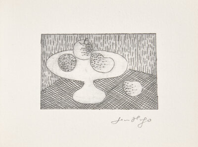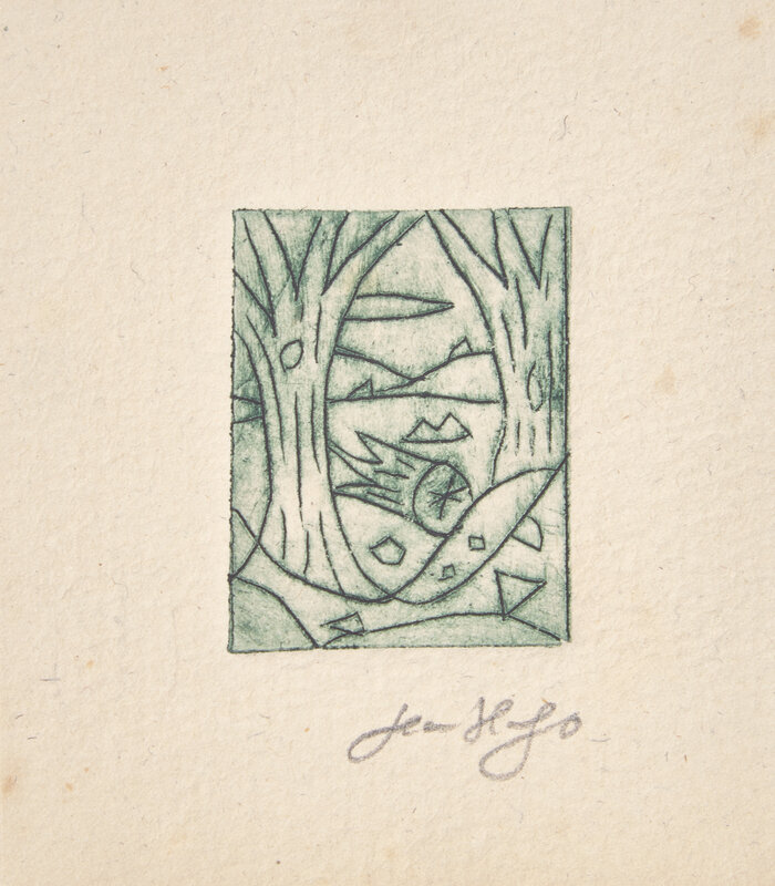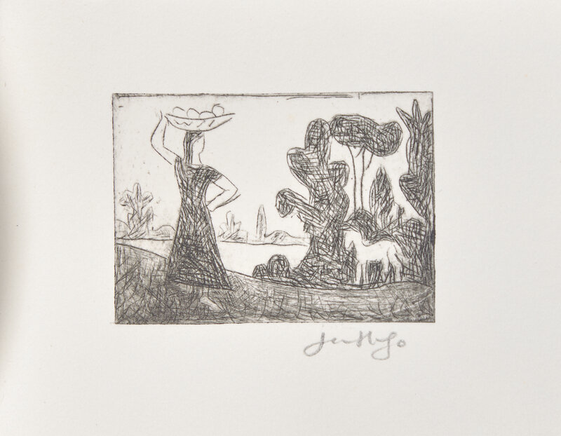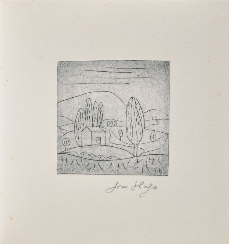 Ales: PAB, 1960. First and limited edition, #II/VI numbered copies (from a total edition of 36). Square 48mo. Illustrated with two drypoint plates by Hugo, each signed by him in pencil below image. Gatherings loose as issued in publisher's stiff printed white wrappers.