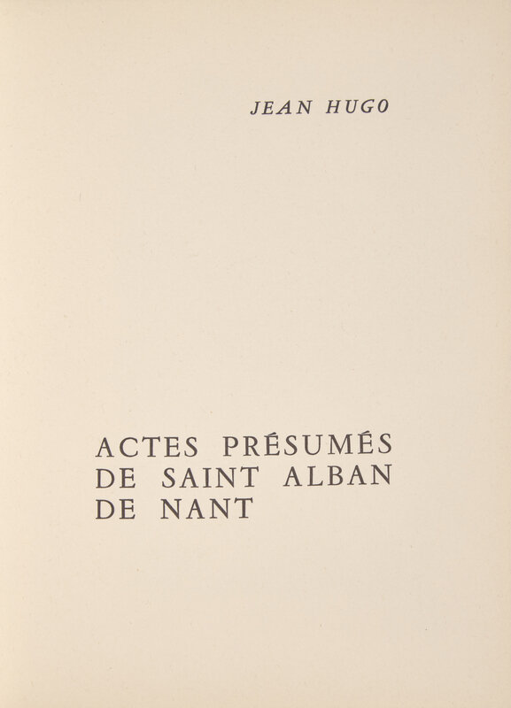 [Art] Hugo, Jean. Actes Presumés de Saint Alban de Nant