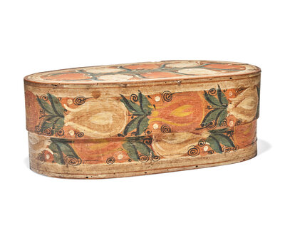 A Painted and Decorated Bentwood Bride's Box, Northern European, 19th Century