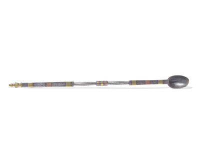 A Copper and Brass-Inlaid Wrought Iron Tasting Spoon, European, 18th Century